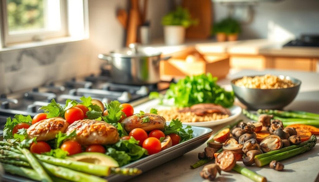 Turn Sunday dinners into stress-free dinner ideas with simple meal prep ideas. These ideas save time and keep flavors rich. By prepping ahead, you can spend more time with your family and less time cooking. Here are some tips to help you: